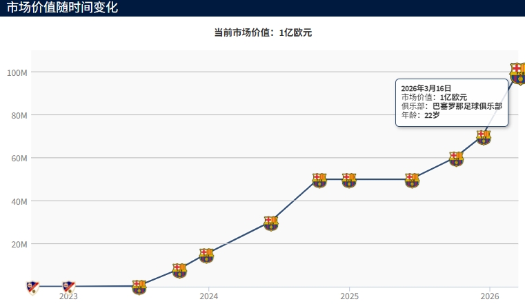 03月16日讯 德转更新西甲球员身价,巴萨中场费尔明身价暴涨3000万欧,从7000万涨至1亿欧!